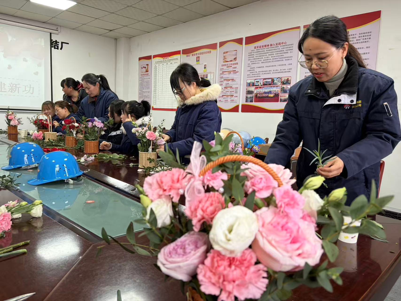 芳菲三月,春意盎然。3月12日下午,汉钢公司烧结厂女职委组织开展“花香颂芳华巾帼建新功”“三八”国际劳动妇女节插花活动,向全体女职工致以节日问候与美好祝福。活动特邀专业花艺师进行现场授课。花艺师从花材识别、色彩搭配、造型设计、花语寓意等方面进行了深入浅出的讲解,并现场演示了插花技巧。在轻松愉快的氛围中,女职工们认真聆听,积极互动,对插花艺术表现出了浓厚的兴趣。一修一剪之间,尽显巧思;一篮一花之中...